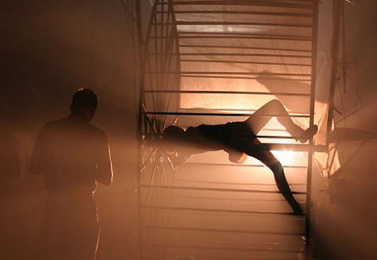 "Objects and dancers are suspended in a giant mobile, robots, video art and live concerts in water and light - a crazy and surreal eco system in the midst of an electronic playground"